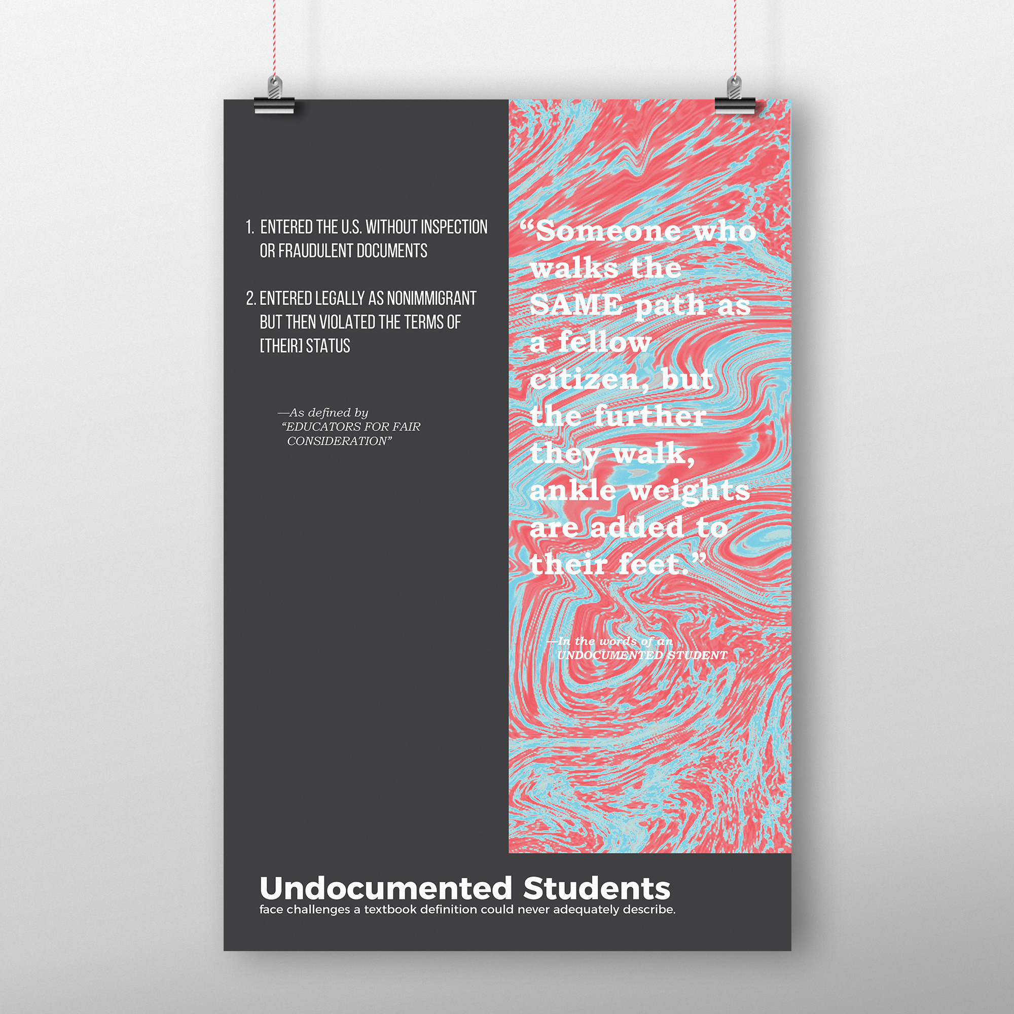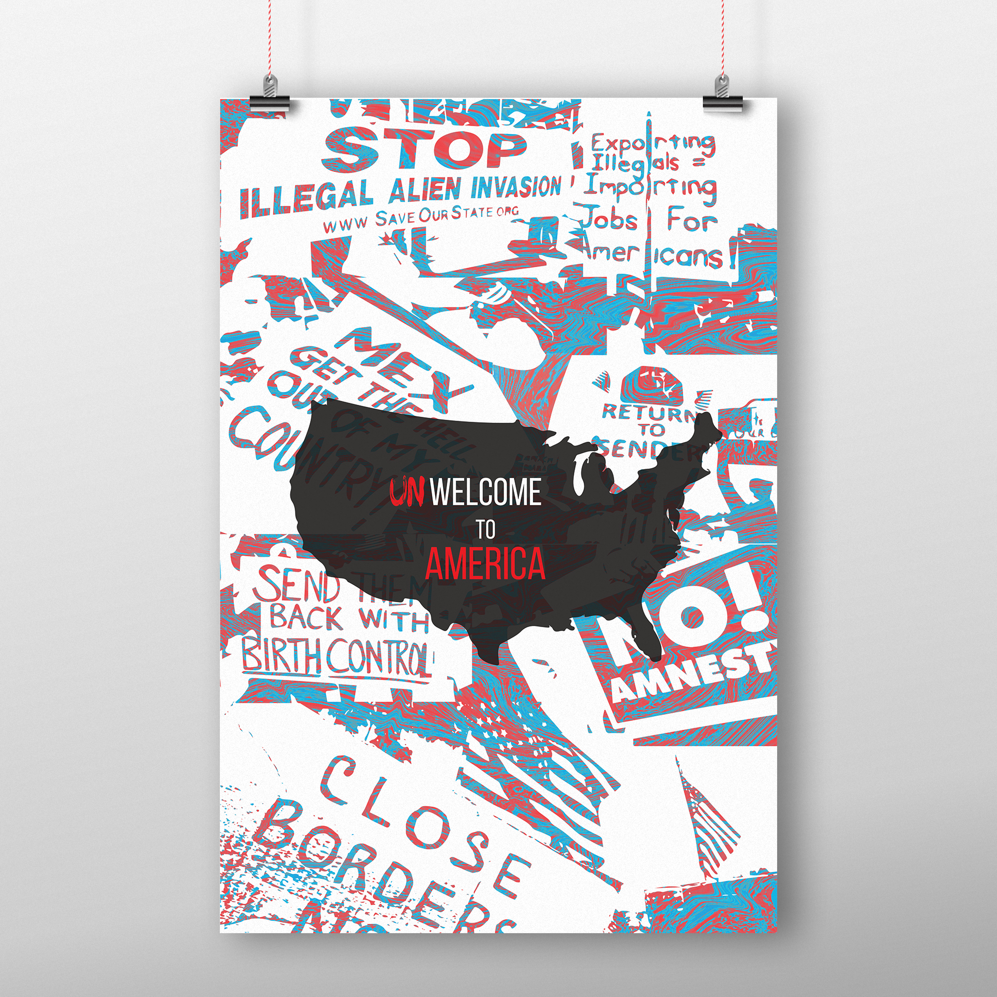 Welcome to America is a poster series highlighting the struggle of undocumented immigrants.